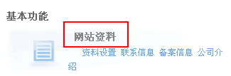 2、进入管理主页后,在基本功能那里点击“网站资料”