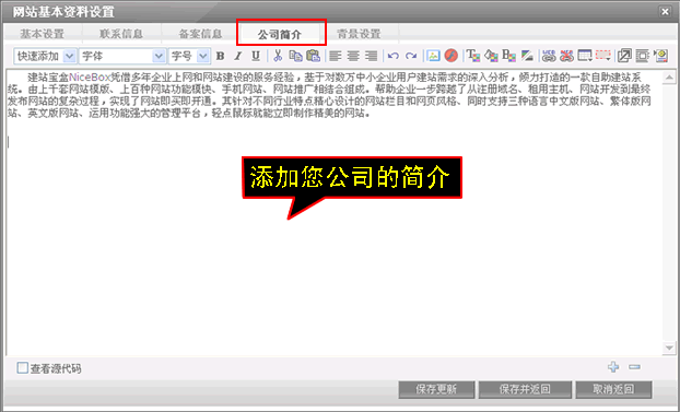 6、上传完备案文件点击“公司简介”